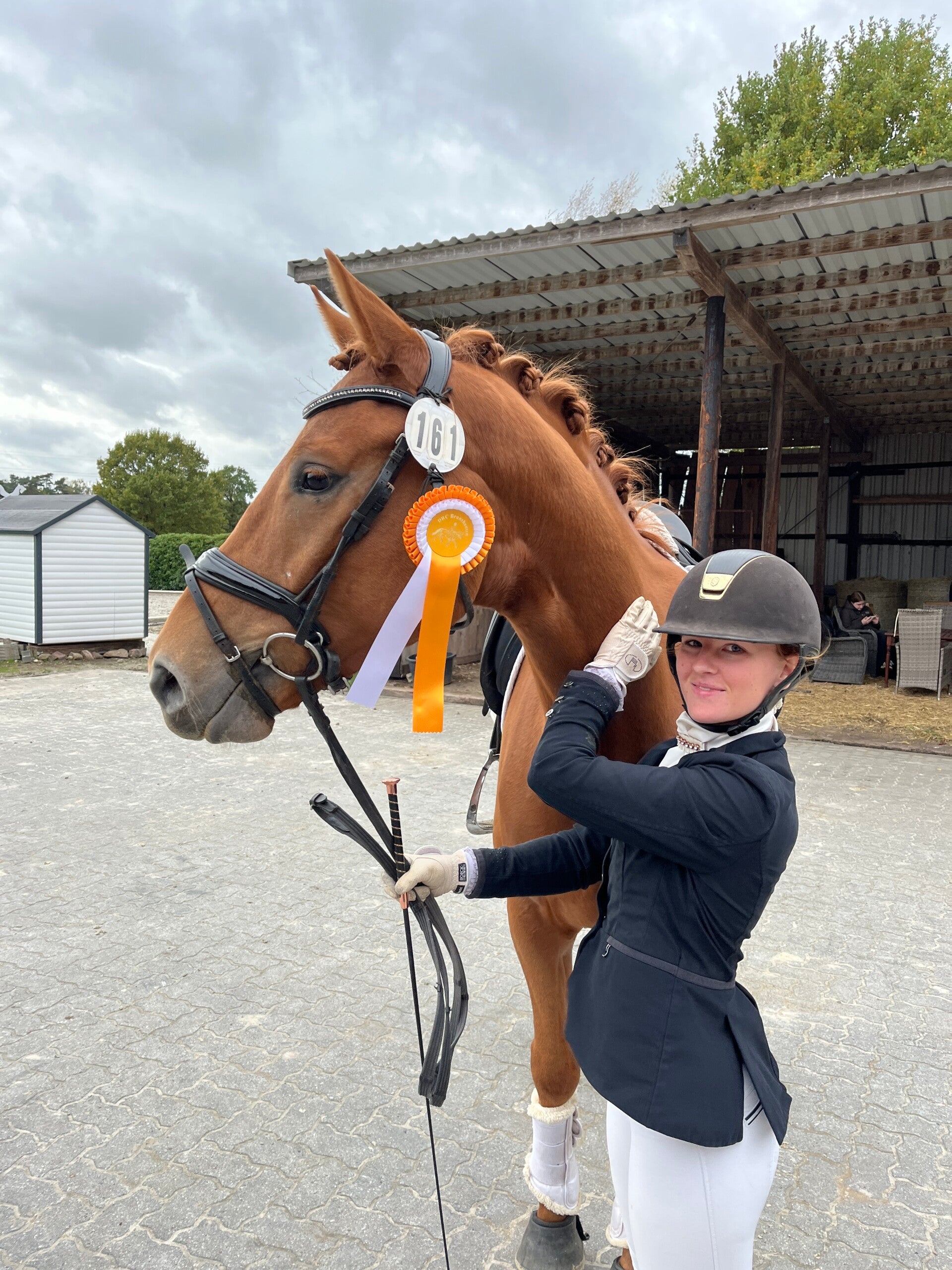 Für Unseren 5 jährigen Sie Unique ging es nach Langem auch wieder los. Er platzierte sich an 2. Stelle in visbek in einer Dressurpferde Prüfung Klasse A.